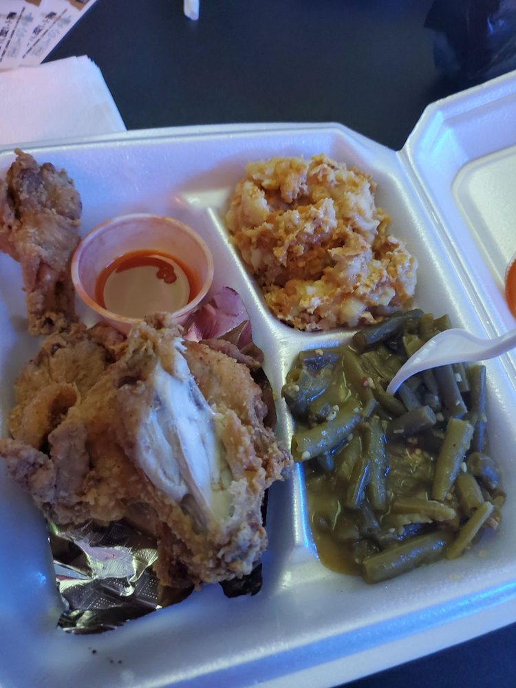 the cook is Millie her sh is trash only thing I liked was fried shrimp...the cheese fries taste like beer was mixed in the cheese sauce the Mac has no flavor the yams taste like can yams with no flavo